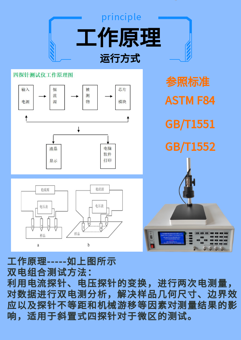 四探針測試儀是運用四探針測量原理的多用途綜合測量設備,用來測試半導體材料電阻率及方塊電阻(薄層電阻)。儀器具有功能選擇直觀、測量取數快、精度高、測量范圍寬、穩定性好、結構緊湊、易操作等特點。