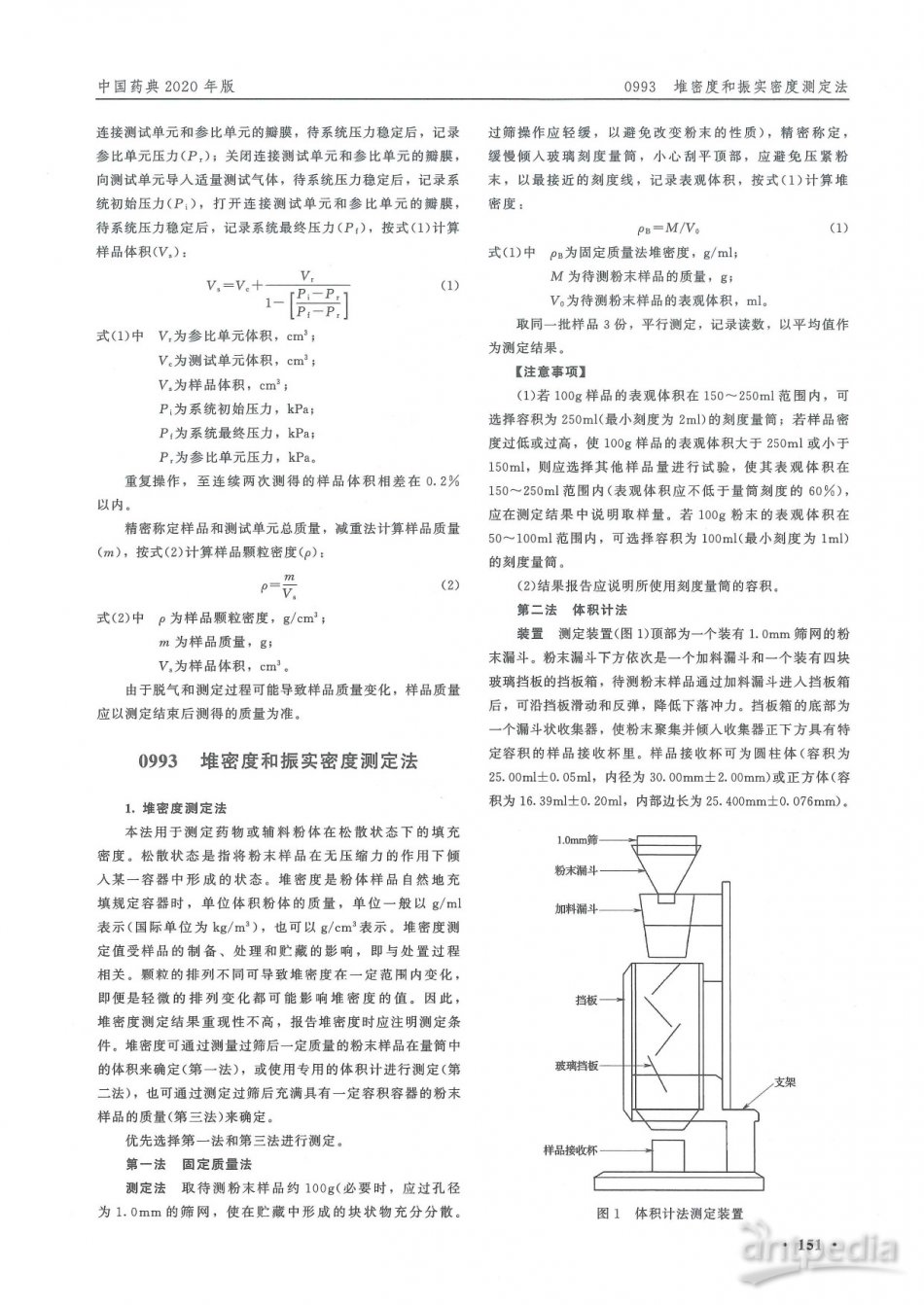 2020版中國藥典-堆密度和振實密度測定法