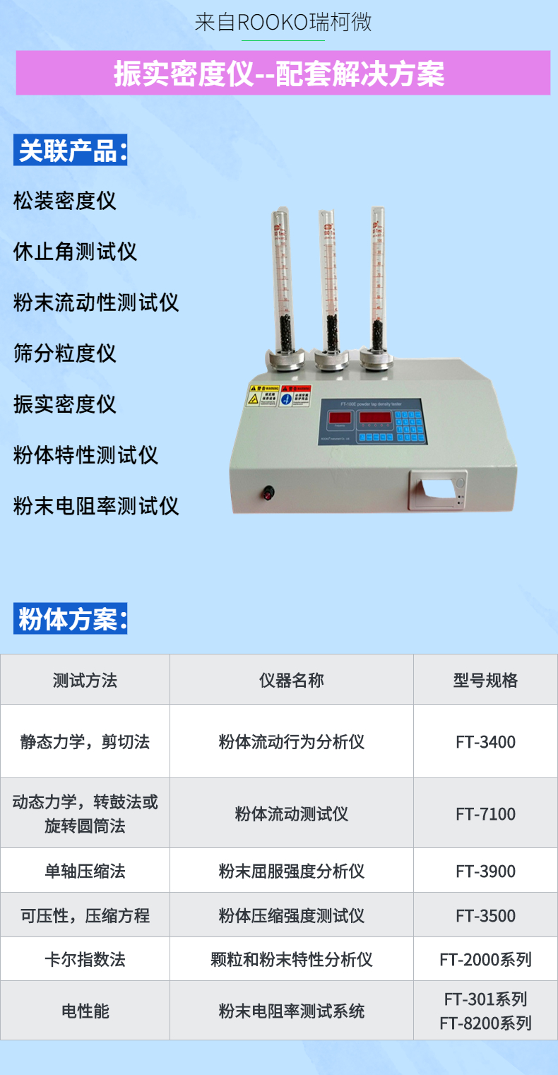 振實密度是指粉體在振動或敲擊下緊密堆積時的密度,壓縮度則是指粉體在受壓后相對于原始狀態的密度變化程度。這兩個指標都可以用來衡量粉體的壓縮性能。振實密度通常用ρf表示,而壓縮度則用C表示。根據經驗,當壓縮度C為20%以下時,粉體的流動性較好,而當壓縮度C*大時,流動性*降。