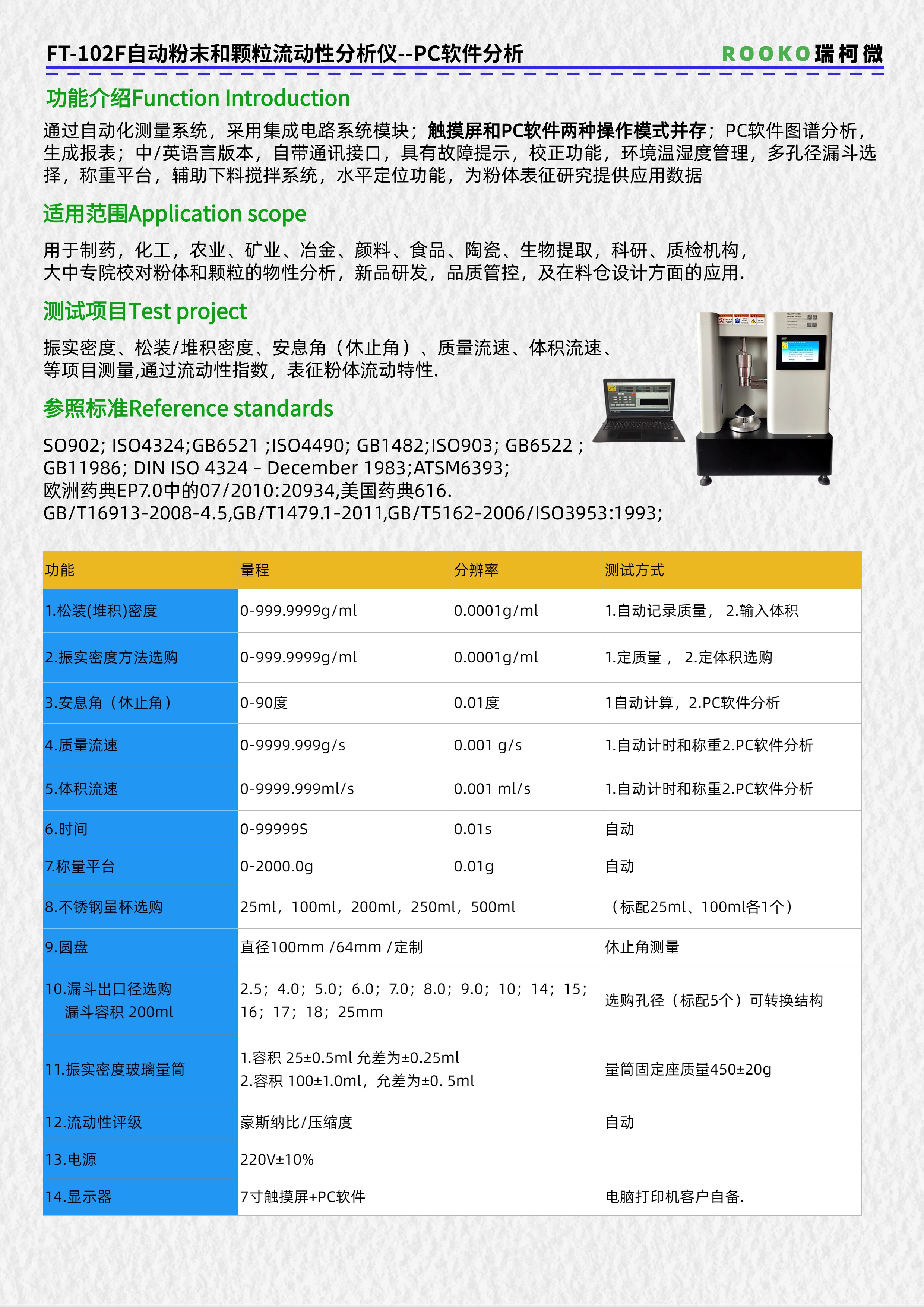 FT-102D/FT-102F自動粉末和顆粒流動性分析儀